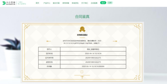 相信很多人都知道大众签章所添加的电子签章是具备法律效力的。这款电子签章系统为客商的合同往来提供了很多的便利性。它不仅可以用来添加签章,同样的,还可以用它来验证电子签名的真伪,防止用户上当受骗。