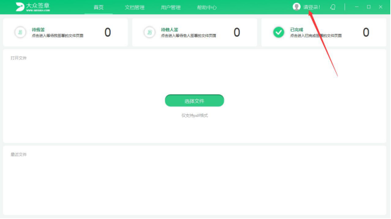 1.首先,用户打开自己电脑上的大众签章客户端。点击“请登录”后,输入登录账号、密码进行登录。