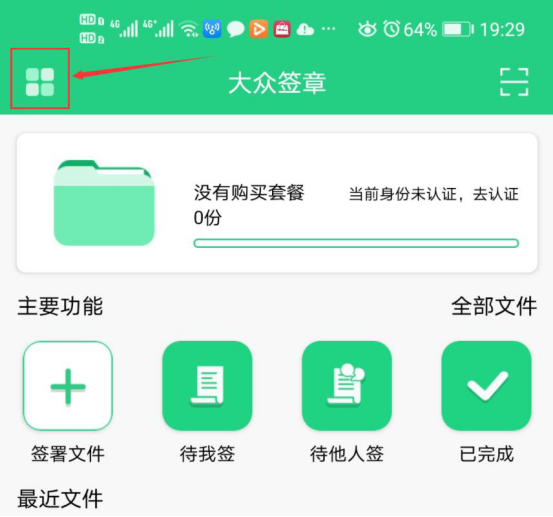 2.然后,进入大众签章的操作页面。点击左上方的“菜单”折叠按钮。
