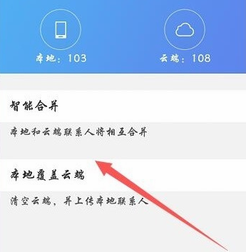 3.如果云端数据和本地数据不同步,可以通过智能合并的方式将本地和云端联系人互相合并!