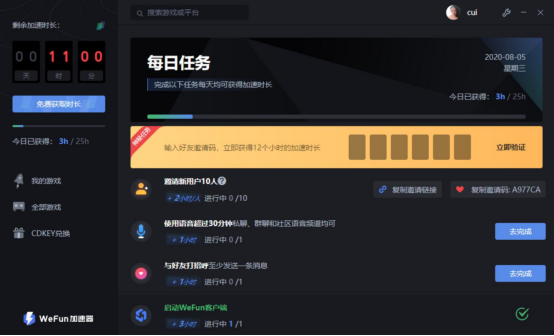 WeFun有很多实用小技巧。比如说邀请新用户的时候,邀请一个就可以获得2个小时的免费时长,可是每天最多也只能邀请10个新用户。