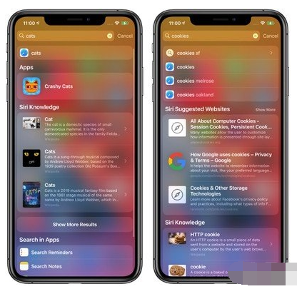 5.改善搜索体验,在聚焦界面输入搜索内容,排在最上方的依然是 APP,之后就是搜索引擎的关键字,点击即可在浏览器直接搜出你想要的东西。