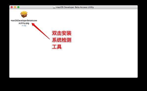 1、下载完整的macOS 11.0公测版升级工具.dmg的文件,打开文件,双击.pkg安装包运行即可检测到最新的macOS 11.0测试版系统升级信息。