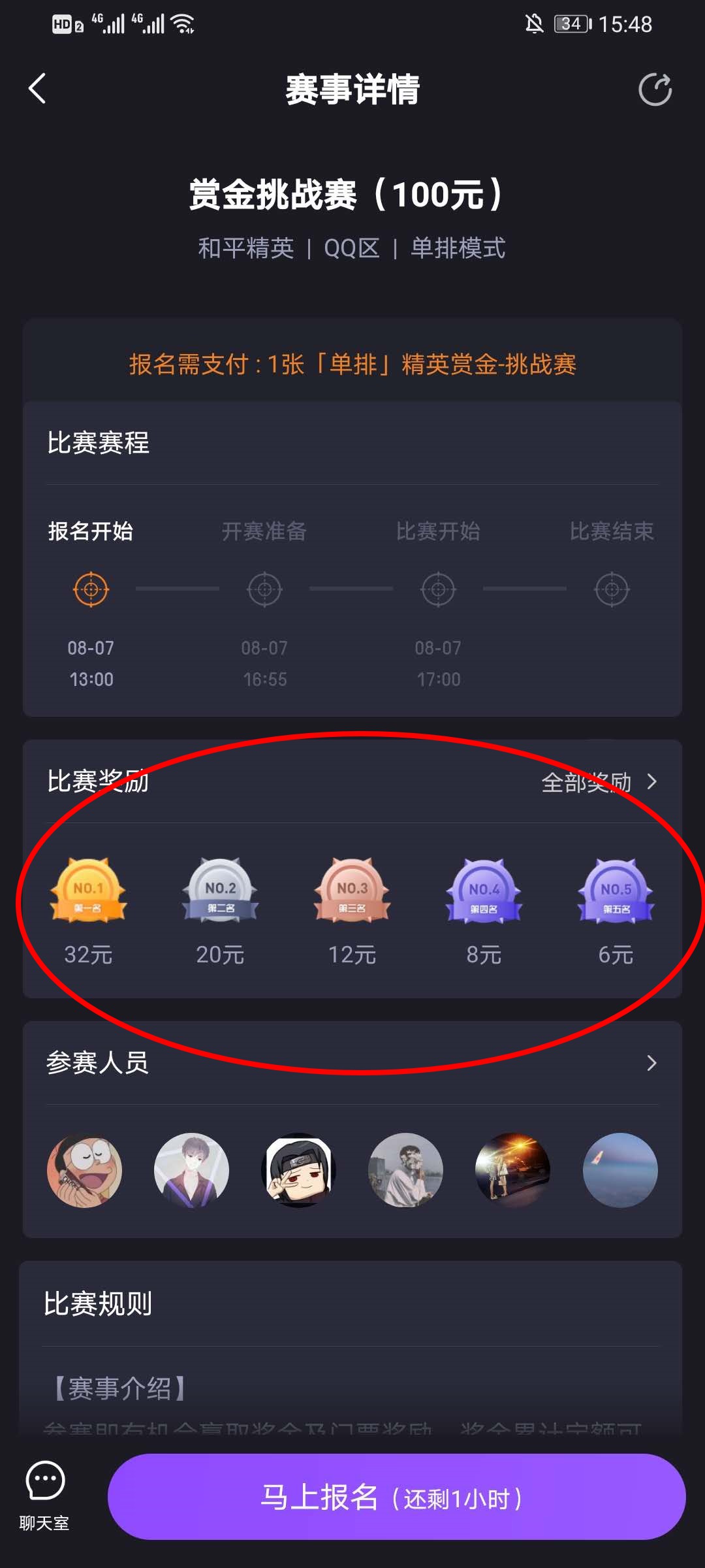 当然能,小编发现大圣电竞最新版有很多的赛事活动,实时免费为各路游戏差好者提供参与方式,赛事模式也是比较多,用户可以选择自己感兴趣或者经常玩的游戏赛事参与,不同的赛事能获得的奖励不—样,用户要是参与赛事的话在进入之前需要先看—下当前赛事的奖励是什么,选定之后就能前去参与啦,但是获胜才有奖金拿哦。