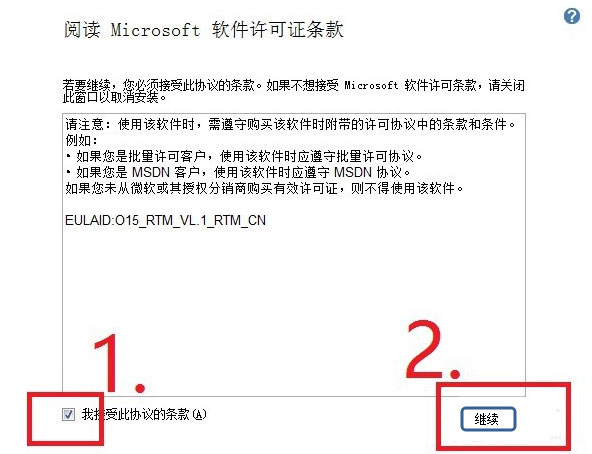 4.勾选“我接受此协议的条款”,右侧选择继续。