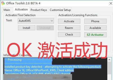 11.等处理好后下面会出现几排字,出现后就代表Office激活成功。