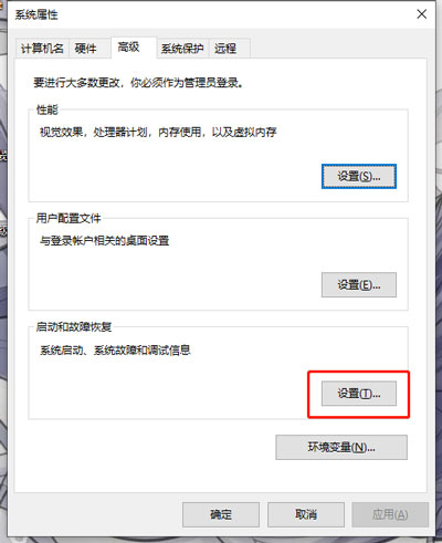 2、在弹出的系统属性界面中,在高级选项卡之下单击启动和故障恢复里的设置按钮;