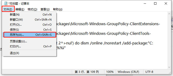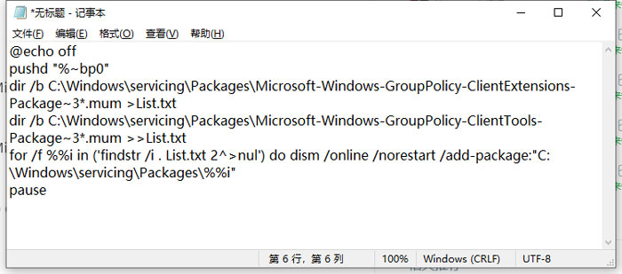 dir /b C:\\Windows\\servicing\\Packages\\Microsoft-Windows-GroupPolicy-ClientExtensions-Package~3*.mum >List.txt