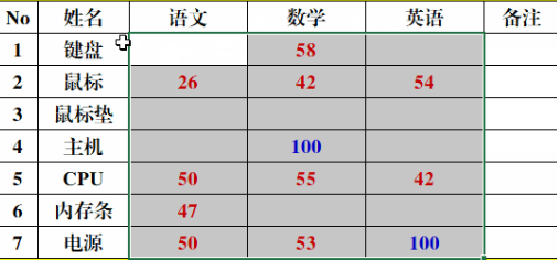 3、返回原表格会发现所有成绩小于60的单元格数字变为红色,成绩等于100变为蓝色,其他的成绩隐藏。