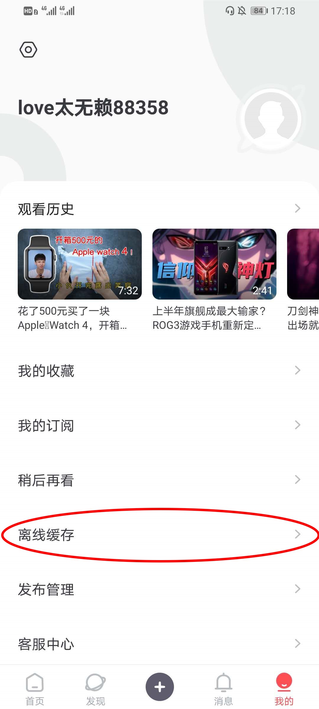 2、在我的界面中,在下方找到离线缓存,点击打开进入离线缓存界面。