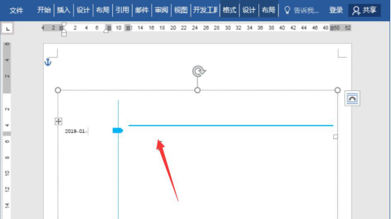 1.首先,打开一个空白的word文档,点击“插入”菜单中的“形状”。从众多形状中点选直线工具,再在word中将它画成自己想要的时间轴长度。