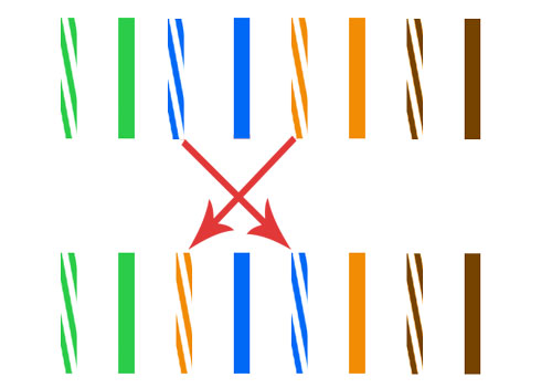 568A标准:绿蓝橙棕,三五互换