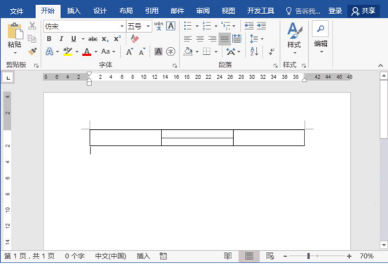 1.首先,在word文档的标题位置插入2行3列的表格,再将第1列和第3列的2行单元格分别合并为一行,如下图所示。