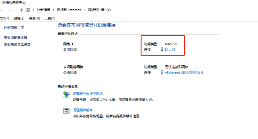 5、在网络和共享中心界面,可以设置你的网络连接,点击蓝色的“以太网”