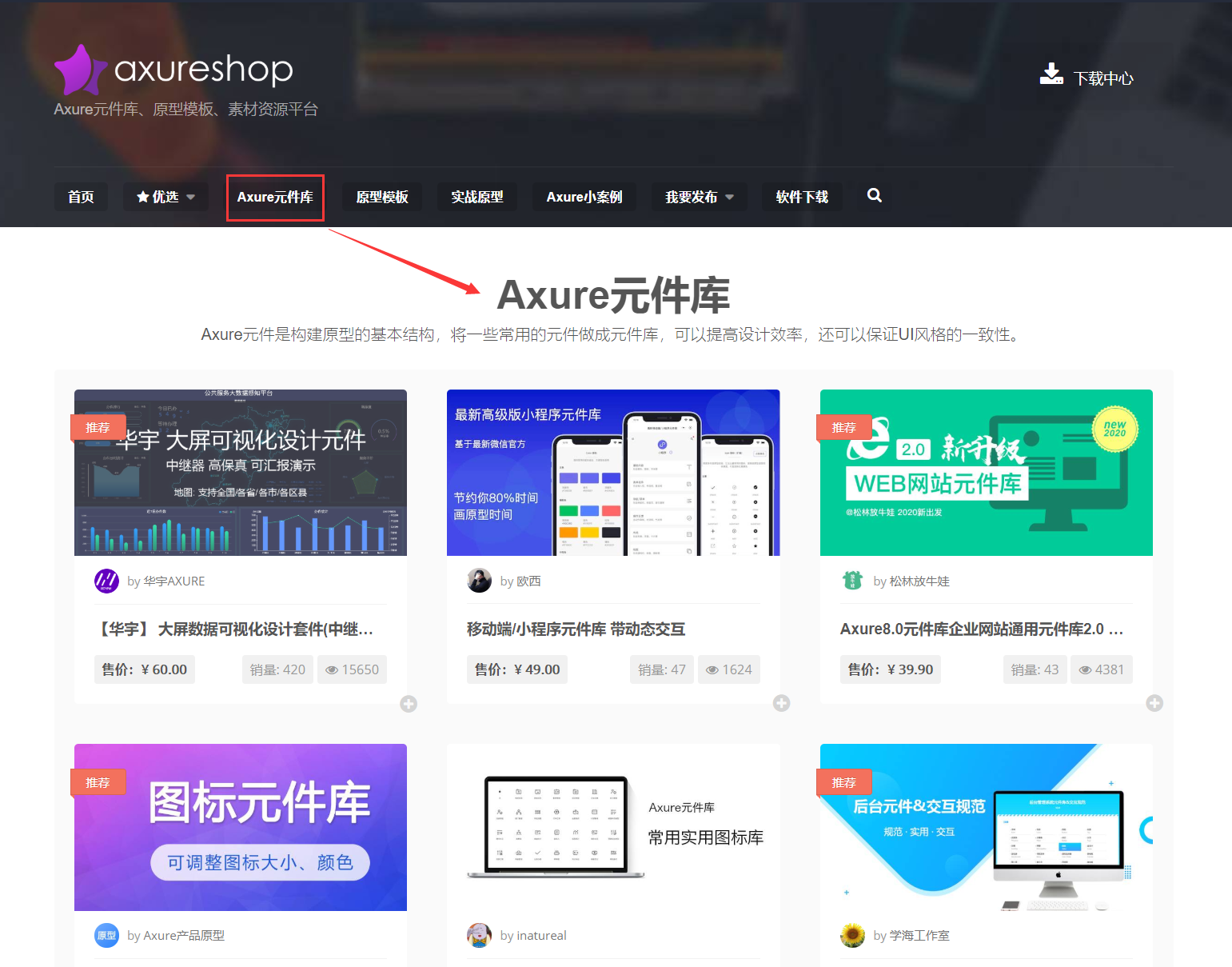 关于元件库,建议初学者先熟练掌握Axure自带常用控件。熟练掌握之后,可以前往产品经理原型交易平台Axureshop【元件库】栏目挑选适合自己的元件库。