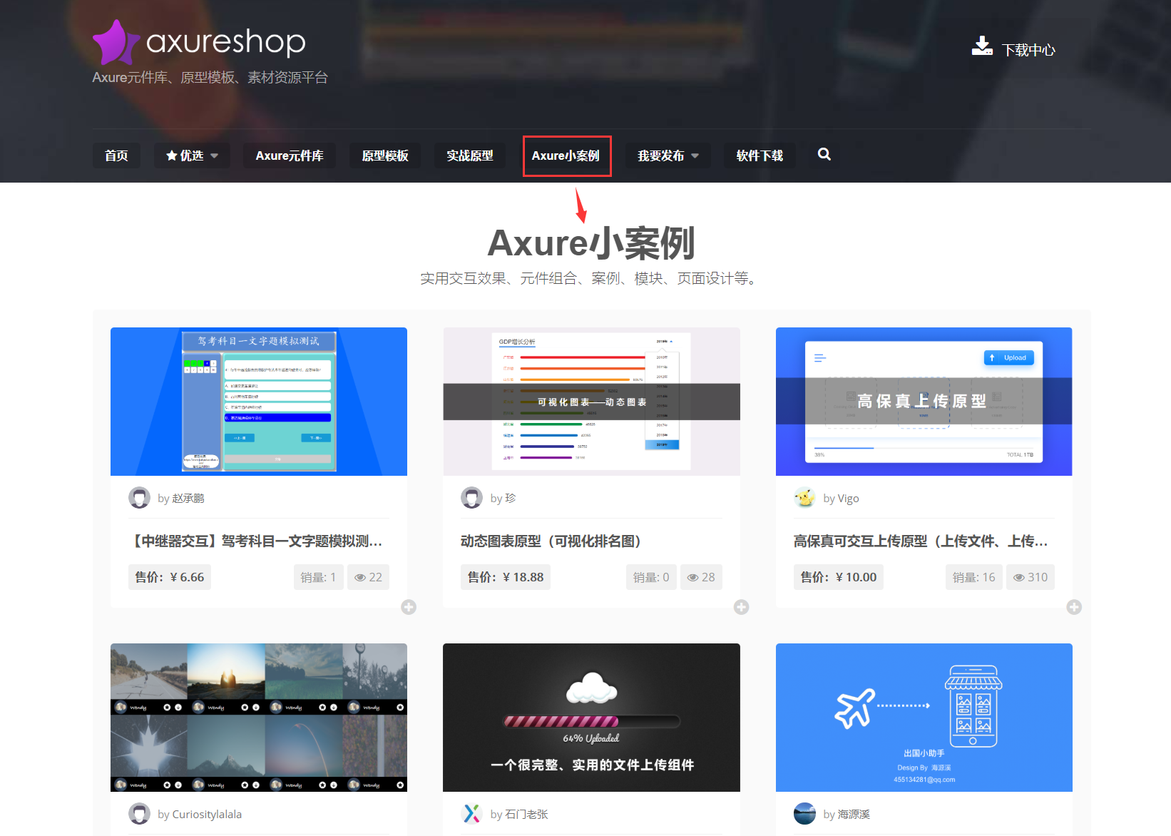 产品经理原型交易平台Axureshop【Axure小案例】栏目拥有众多付费精品案例,购买后可添加店主QQ,享受打破沙锅问到底的售后服务。