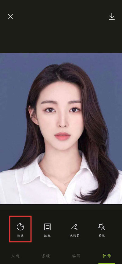 3.在创作中选择使用【贴纸】;