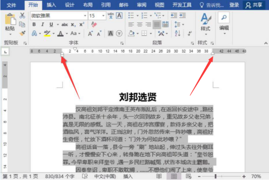 4.word标尺可以首行缩进、悬挂缩进,还可以左右缩进。同样的,将正文内容全选,按着Alt键,点击拖动标尺上的正方形按钮就可以实现左缩进了。而右缩进的话,则是拖动标尺右边的三角形按钮。