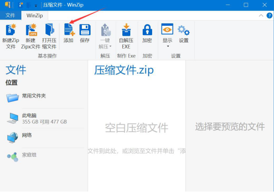 1.首先,用户可以在本站下载winzip,下载后完成安装。并进入winzip操作界面,点击界面功能栏中的“添加”按钮。