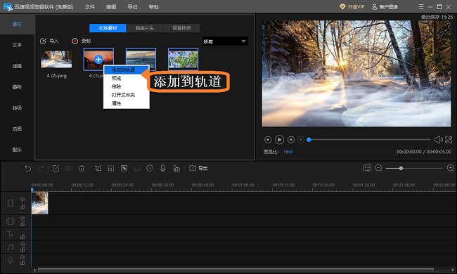 图片上传成功,按照顺序将图片逐一添加至轨道,你可以直接拖拽图片,或是右击图片选择【添加到轨道】的按钮,