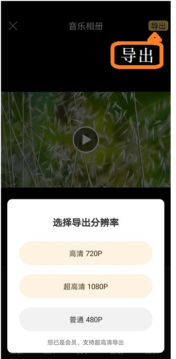 电子相册制作完成,点击页面右上角的【导出】按键,设置导出分辨率,分别是高清、超高清、普通,选好之后,即可导出电子相册。