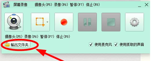 打开屏幕录像功能,如图,点击【输出文件夹】,进行相关设置,