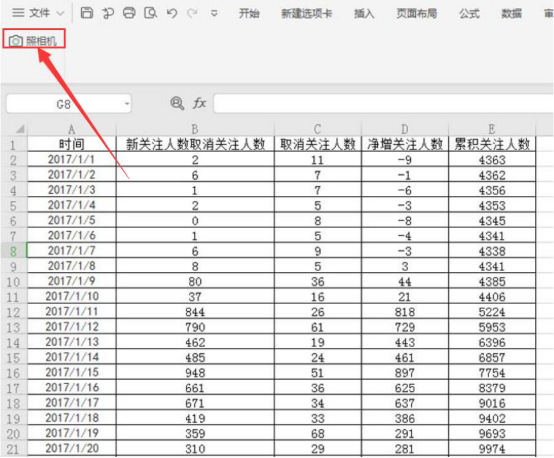 6.接着,再点击excel操作界面左上方的“照相机”,自行选择需要克隆的表格区域。