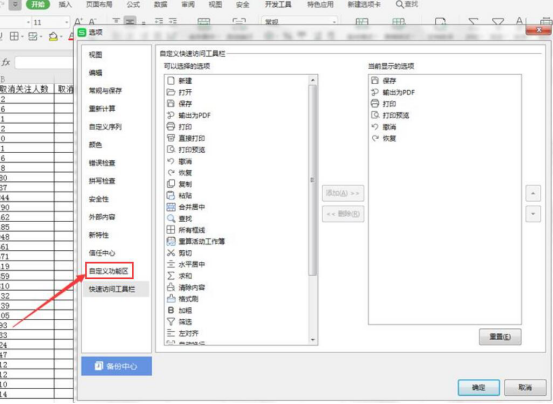 2.然后,excel会自动弹出“选项”窗口。在此窗口中点击切换至“自定义功能区”。