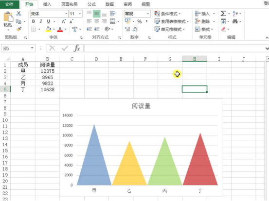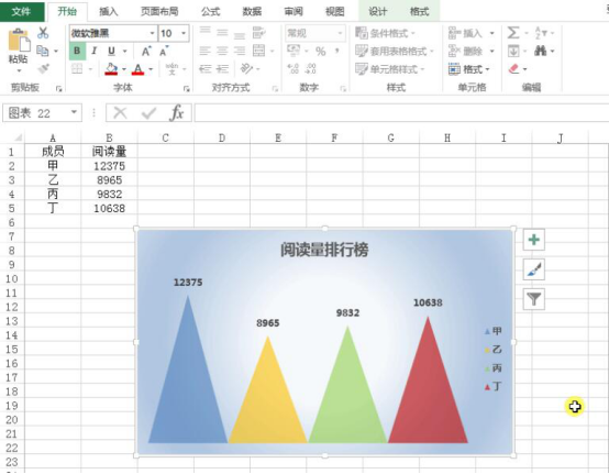7.接着,“Ctrl+C”复制三角形,两次单击选中需要美化的excel图表柱形条,再“Ctrl+V”粘贴,完成三角形和柱形条的替换。