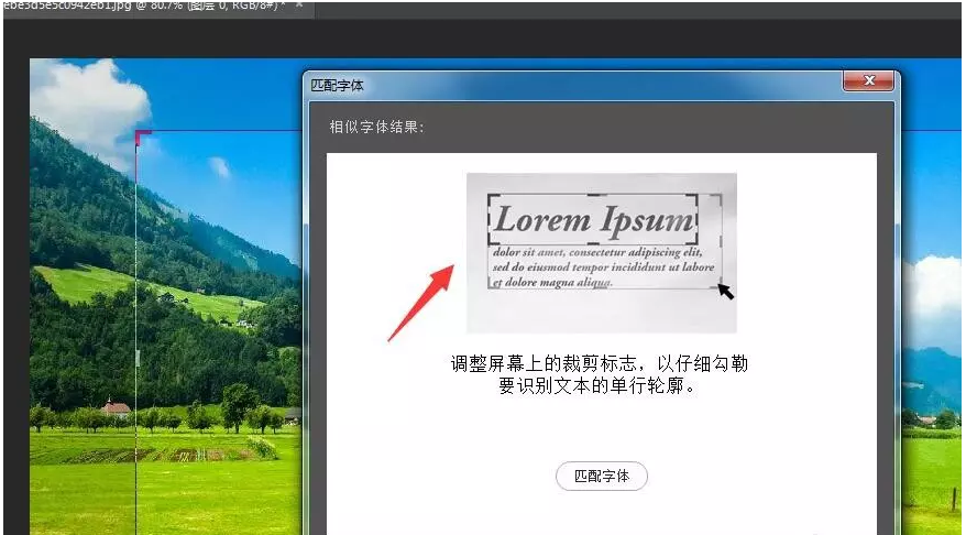 此时会显示查找到的匹配字体,点击确定,同时,你还可以借助文字工具在图片中输入想要替换的文字,