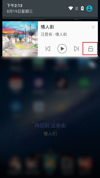 2、在手机通知栏中点击APlayer音乐导航条右下角的【解锁】;