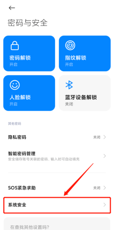 进入以下界面,如图,点击【系统安全】选项,