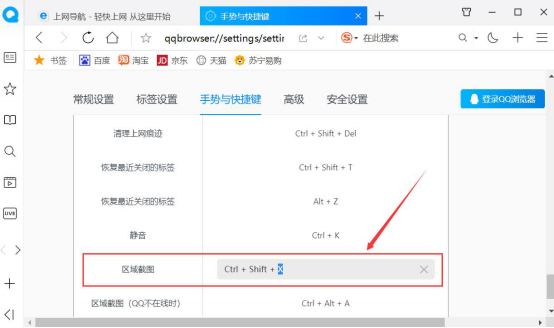 QQ浏览器默认的截图快捷键是“Ctrl+Shift+X”,如果用户想要更改的话,请勿和其他内容项的快捷键产生冲突。