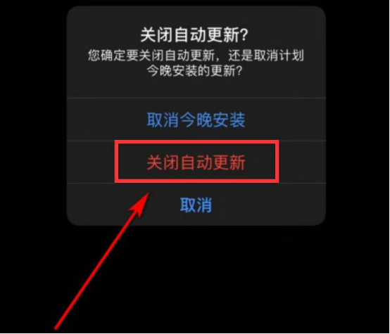 6.最后,它会弹出如下图的窗口提示。点击“关闭自动更新”即可成功将iPhone的自动更新功能给关闭。
