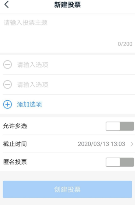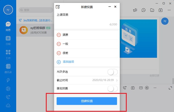 进入新建投票窗口,输入投票内容和选项,点击【创建投票】,如图所示,