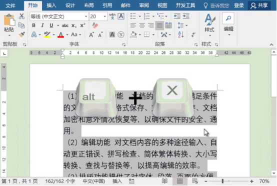 7.现在,我们就来验证刚才设置的word常用字体快捷键是否成功。先将需要更换字体的文本内容选中,再按“Alt+X”键。