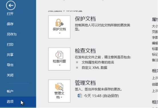 2.然后,点击word“文件”菜单中的“选项”。