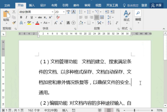 8.最后,我们便会发现文本内容的字体由原来的“等线(中文正文)”变成了微软雅黑,说明word常用字体的快捷键设置成功。