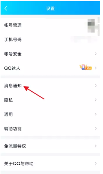 滑动新的界面,点击【设置】选项,进入设置界面,如图,找到【消息通知】功能,