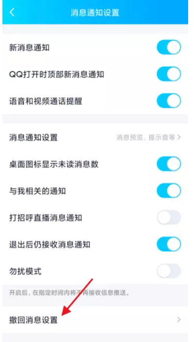进入消息通知设置界面,如图,点击【撤回消息设置】,