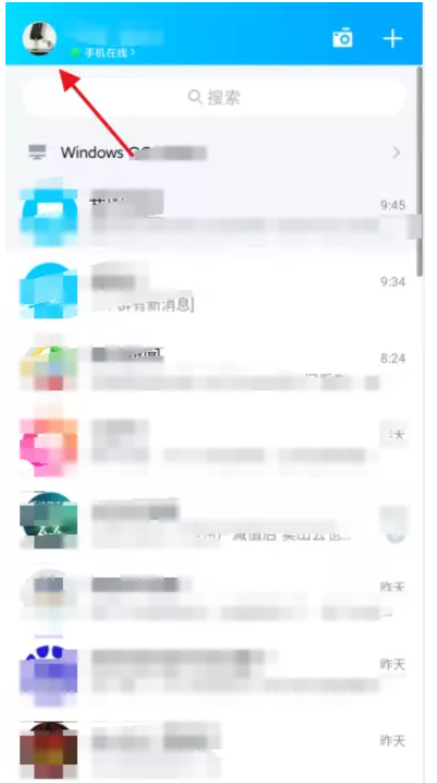 打开手机QQ,进入界面,点击左侧的个人头像,