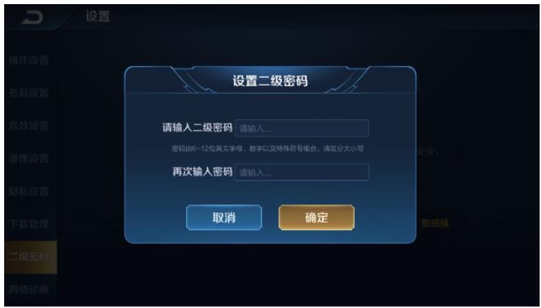 进入设置界面,在左侧栏找到【二级密码】选项,设置打开二级密码,