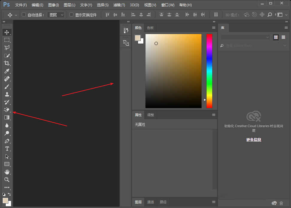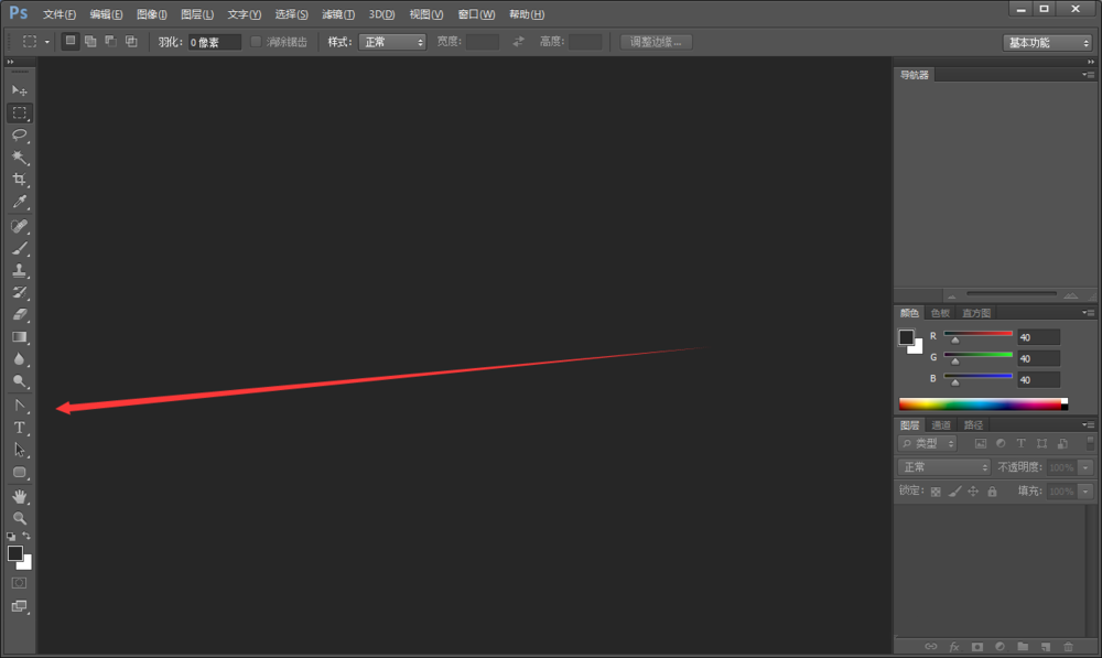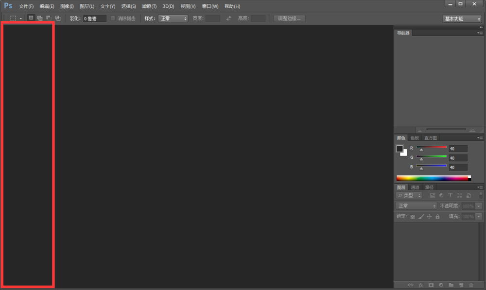 还有一种情况,如图,Photoshop软件左侧工具栏不见了,怎么办呢?解决方法如下: