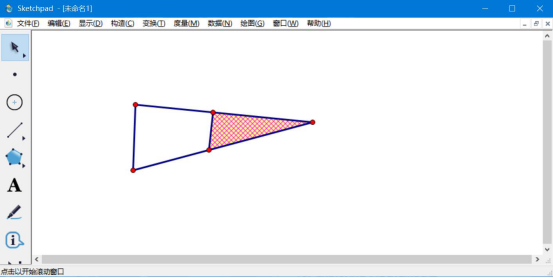 2.然后,利用“移动箭头工具”将这个小三角形选中,并按一下快捷键“Ctrl+P”,几何画板便将重叠部分阴影画出来了。