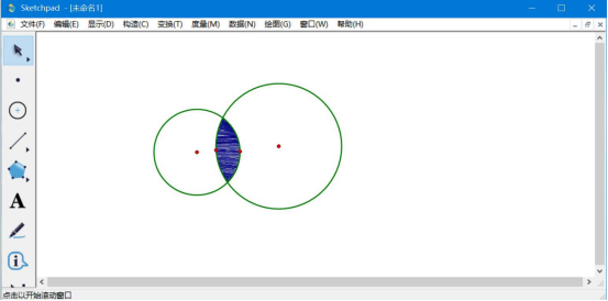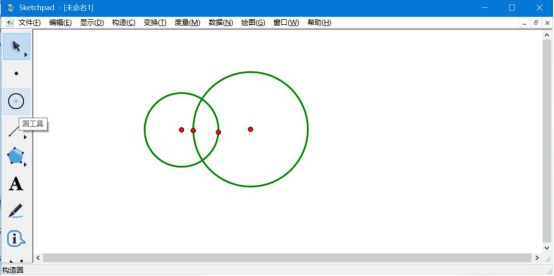 1.先打开几何画板,在界面中,点击“圆工具”,并在绘图区域绘制出两个交叉重叠的圆,如下图所示。