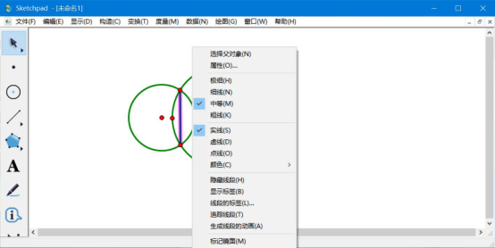 4.几何画板画重叠部分阴影的时候,我们为了阴影效果更美观。还可以右键单击该线段,并根据自己的需要设置颜色、线段大小和样式。