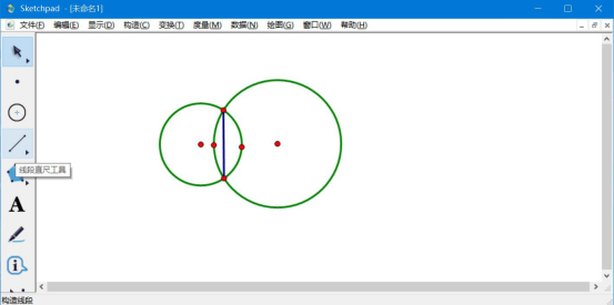 2.然后,点击几何画板的“线段直尺工具”在重叠部分画一条线段,注意线段不要超出重叠部分的范围,而这条线段是作为阴影参考线用的。