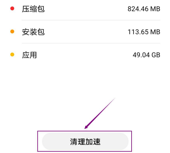 3.然后,在存储页面中,我们点击“清理加速”按钮。