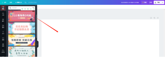5、进入像素为550*228的未命名设计,这里在左侧模板中选择心仪的模板,比如这里选择“520最强表白攻略”,点击该模板,它就会载入右侧空白图片中。