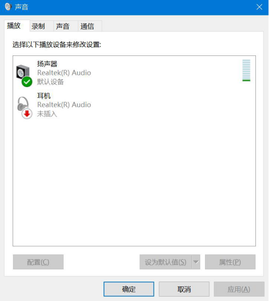 3.或者,我们也可以通过电脑任务栏的扬声器按钮进入“声音”操作窗口。切换至“播放”选项卡,看看默认的扬声器是否有声音波动,如果有的话,那调大扬声器的音量,kk录像机便可以将电脑声音一起录制。如果没有的话,那就将有声音波动的播放设备设为默认值。